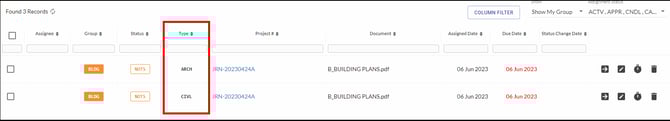 For example, a document assigned to the Building department (group) for a structural review and to the Building department (group) for a civil review can each use a different Review Type value when no specific reviewer is going to be assigned.